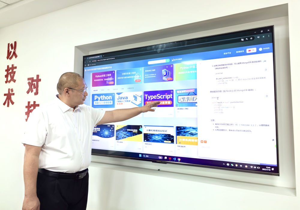 “我們?yōu)闉跗潉e克斯坦學(xué)員量身打造了數(shù)字技能應(yīng)用的‘虛擬課堂’,在這個智能教學(xué)平臺界面上輸入問題,人工智能會隨即回應(yīng)。”趙洪宇展示著他們的產(chǎn)品。