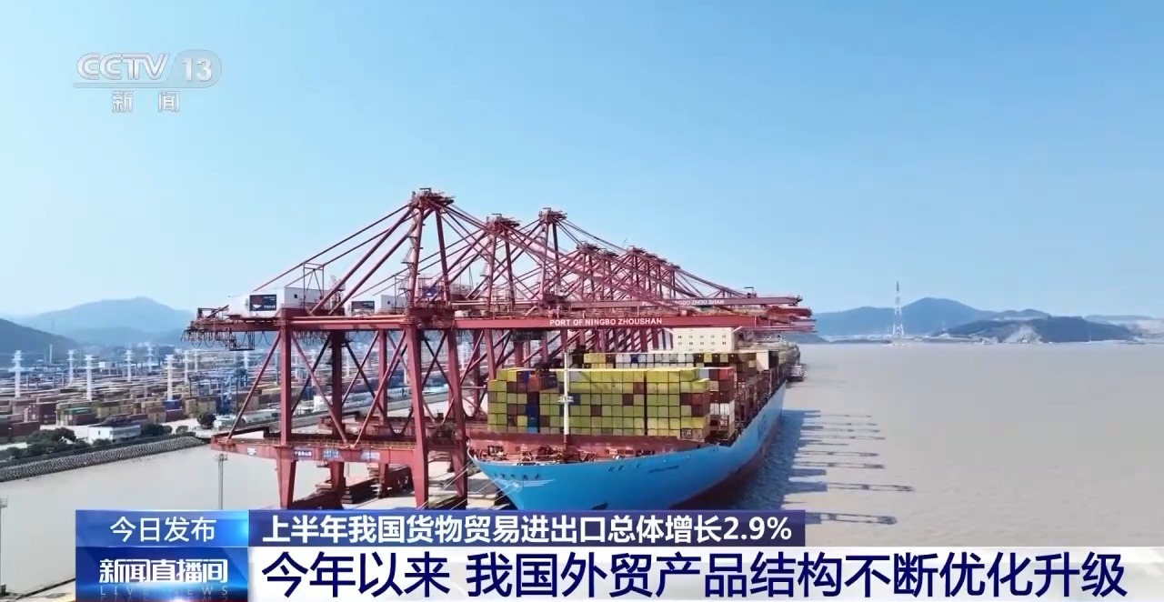 上半年貨物貿(mào)易進出口總體增速達到2.9%: