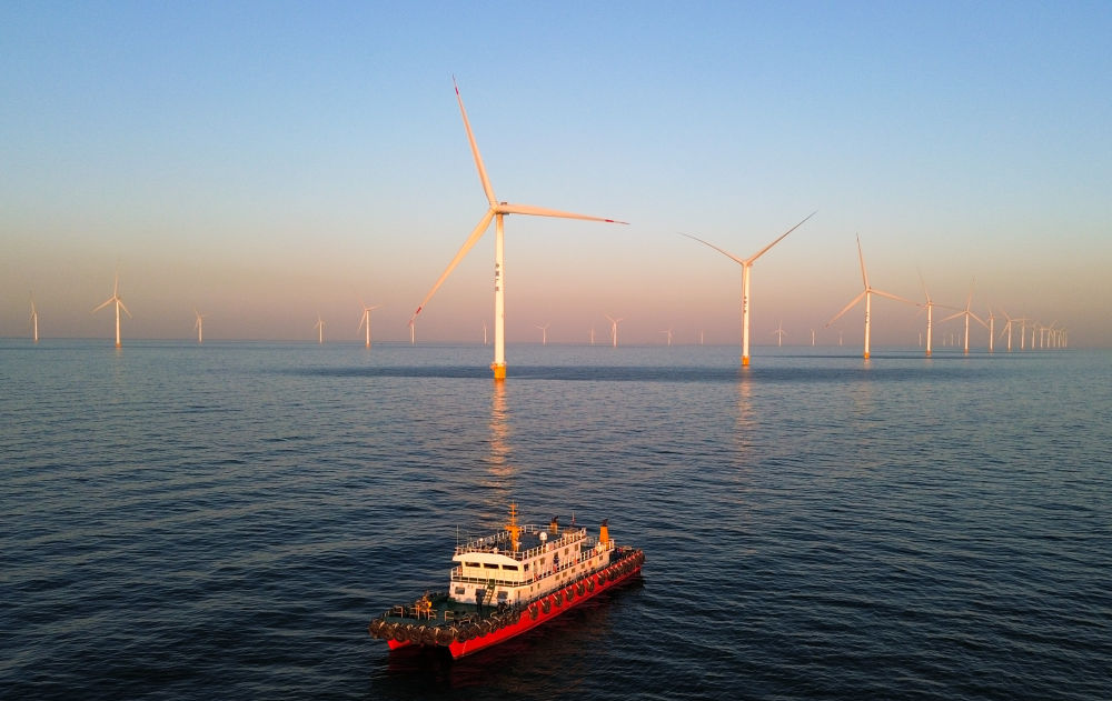 這是位于山東省萊州市海域的海上風(fēng)電項(xiàng)目(2025年1月7日攝,無人機(jī)照片)。新華社記者 徐速繪 攝