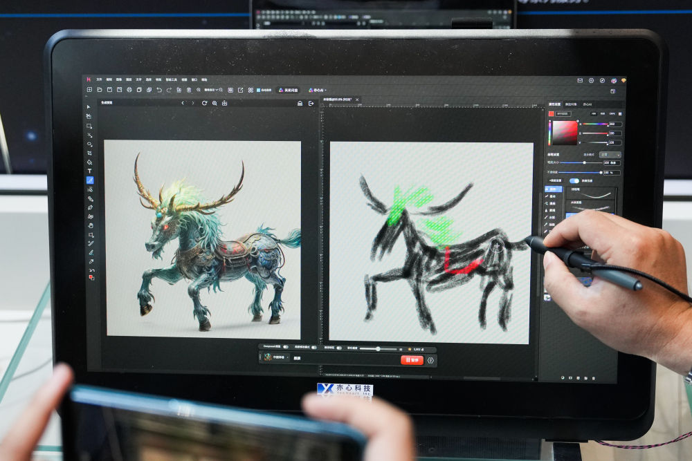 6月20日,在北京石景山區(qū)中關(guān)村科幻產(chǎn)業(yè)創(chuàng)新中心,工作人員展示悟空?qǐng)D像軟件的AIGC功能。新華社記者 鄭煥松 攝