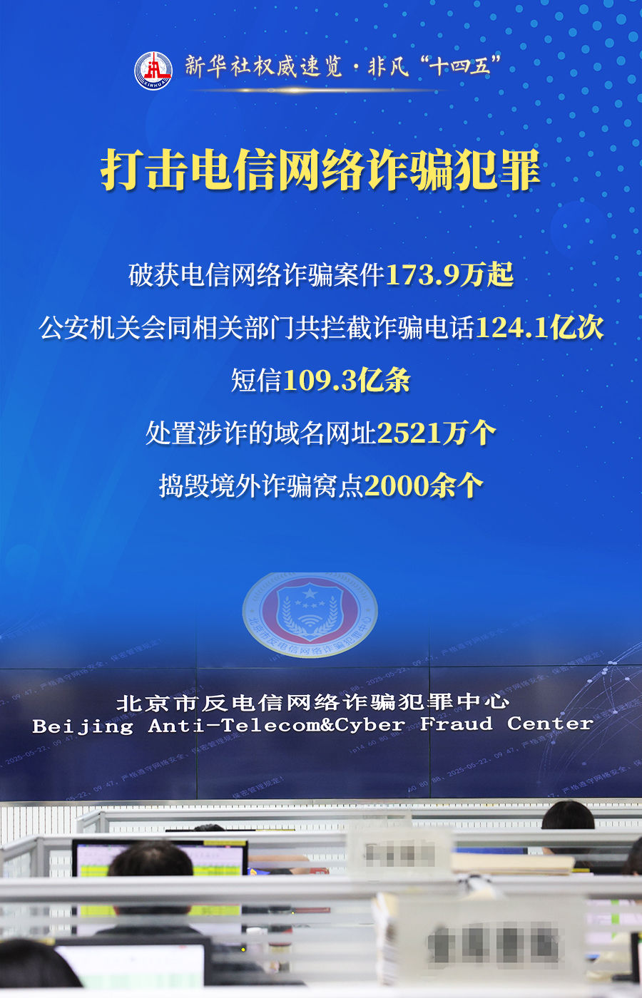 破獲電信網(wǎng)絡(luò)詐騙案件173.9萬起、推動建立全國統(tǒng)一的人口登記管理制度、推出60多項改革新措施……23日舉行的“高質(zhì)量完成‘十四五’規(guī)劃”新聞發(fā)布會上,公安部介紹了以高水平安全護(hù)航“十四五”規(guī)劃高質(zhì)量完成有關(guān)情況。通過這組海報,一起來看看。