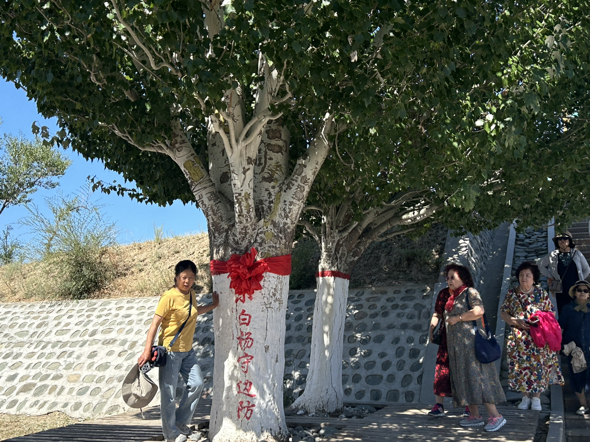 “當(dāng)年這里除了鐵絲網(wǎng)就是石頭山?!币娮C哨所變遷的兵團(tuán)職工蔣晶華回憶,官兵們住地窩子、啃干馕,卻始終像那棵白楊一樣“向下扎根”。如今,第二代哨樓旁的白楊樹已成參天大樹,樹干上“守衛(wèi)祖國”的刻字仍清晰可辨。
