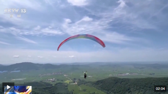 進(jìn)入暑期,吉林長(zhǎng)春雙陽區(qū)太平鎮(zhèn)一面山村的航空飛行營(yíng)地迎來客流高峰,不少游客體驗(yàn)著空中翱翔的樂趣與刺激。