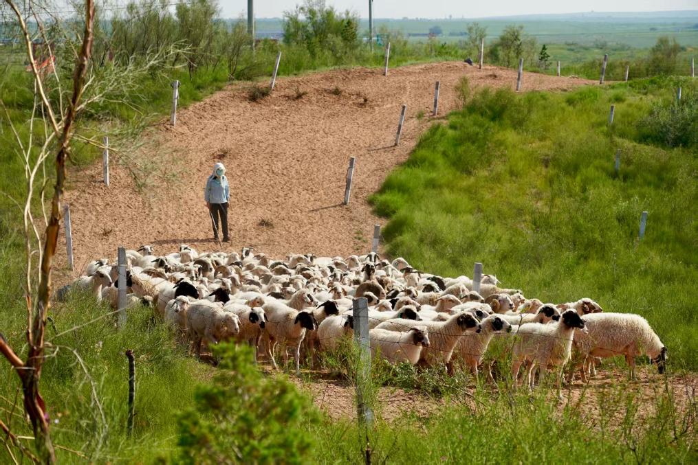 鹽池縣灘羊生態(tài)牧場(chǎng)養(yǎng)殖的灘羊。新華社記者張瀚暘 攝