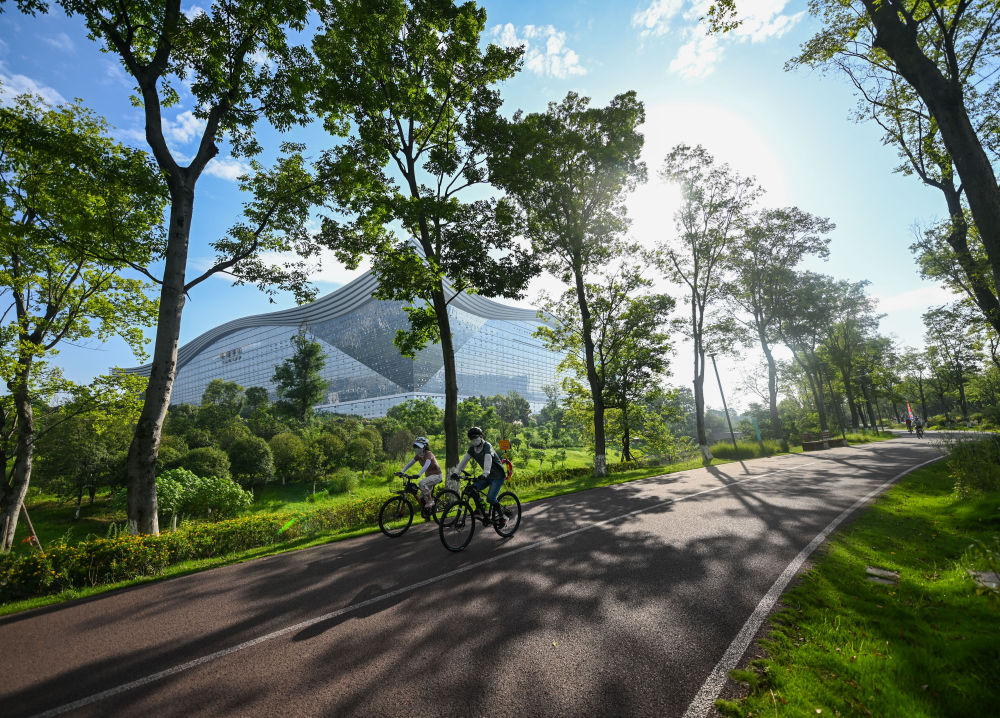 資料圖:人們在成都高新區(qū)桂溪生態(tài)公園騎行 。新華社記者 王曦 攝