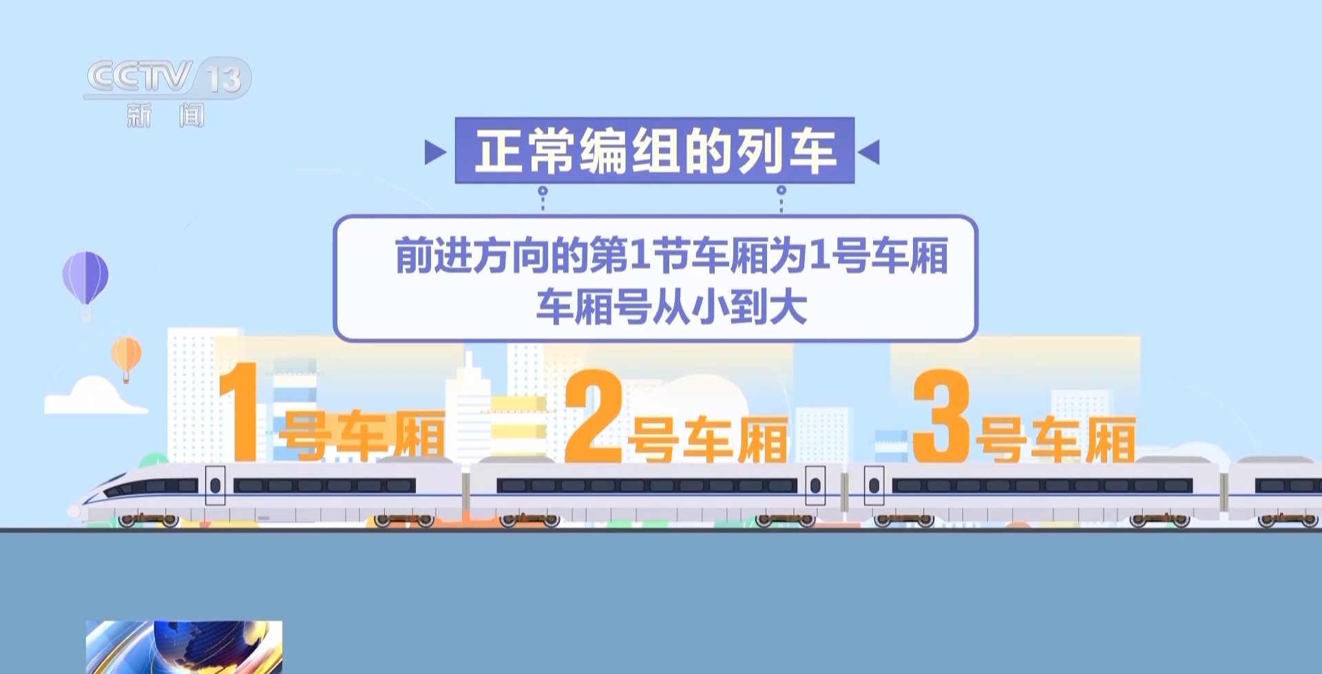 國鐵太原局大同南站客運值班員 張家鶯:現(xiàn)在大多數(shù)車站都在旅客進入站臺處的LED屏上顯示車廂排序信息,旅客通過排序能判斷自己的車廂是應(yīng)該往前走還是往后走。很多高鐵站還設(shè)置有黃、綠、藍、紫等顏色的地標,地標上標注的數(shù)字代表列車??空九_后車廂所在的位置。