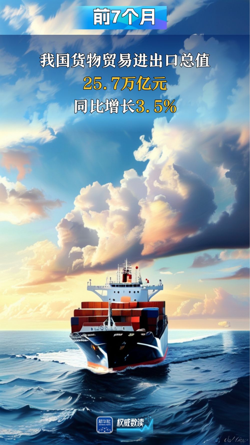 海關總署7日發(fā)布數據顯示,今年前7個月,我國貨物貿易進出口總值25.7萬億元人民幣,同比增長3.5%。面對復雜外部環(huán)境,我國外貿運行保持向上向好勢頭,經濟運行穩(wěn)中有進。