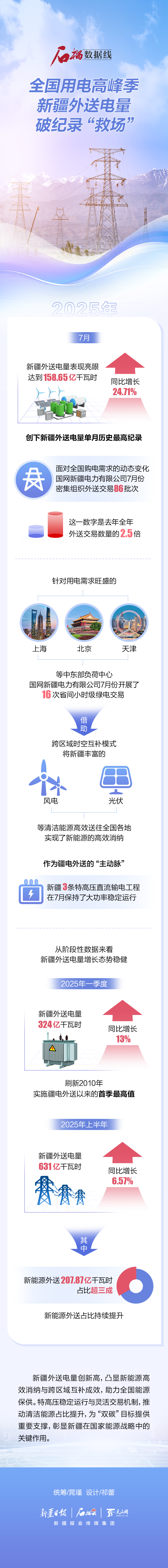 新疆外送電量創(chuàng)新高,凸顯新能源高效消納與跨區(qū)域互補(bǔ)成效,助力全國(guó)能源保供。特高壓穩(wěn)定運(yùn)行與靈活交易機(jī)制,推動(dòng)清潔能源占比提升,為“雙碳”目標(biāo)提供重要支撐,彰顯新疆在國(guó)家能源戰(zhàn)略中的關(guān)鍵作用。