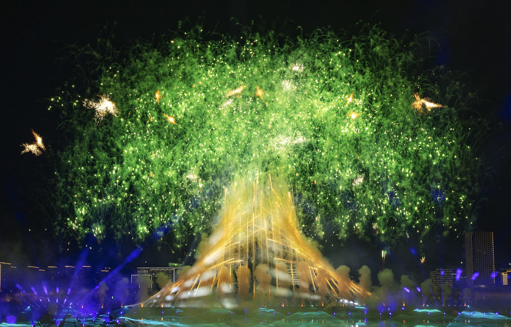 開(kāi)幕式上,每個(gè)環(huán)節(jié)都融入文化巧思。繽紛的焰火在夜空綻放,篆書“成都”兩字源于距今兩千多年的青銅兵器,開(kāi)滿“鴿子花”的“友誼之樹(shù)”以成都金沙遺址大樹(shù)根遺跡和“植物活化石”桐樹(shù)為創(chuàng)意靈感。