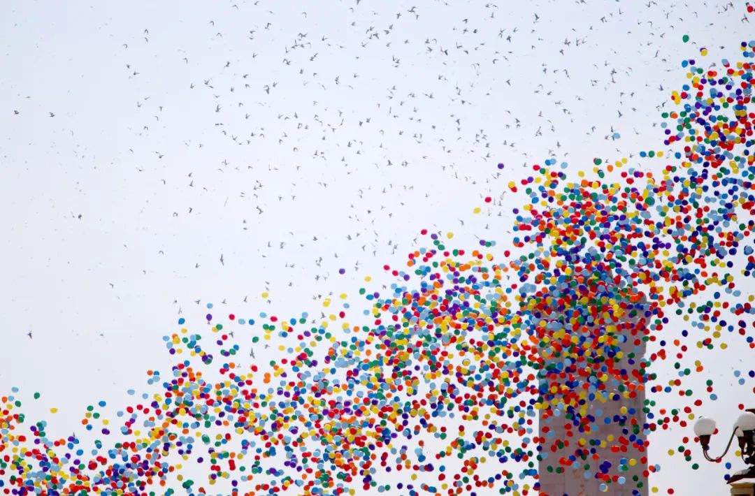 2015年9月3日,中國人民抗日戰(zhàn)爭暨世界反法西斯戰(zhàn)爭勝利70周年紀念大會在北京隆重舉行。這是紀念大會現(xiàn)場放飛氣球和白鴿。新華社記者 張加揚 攝