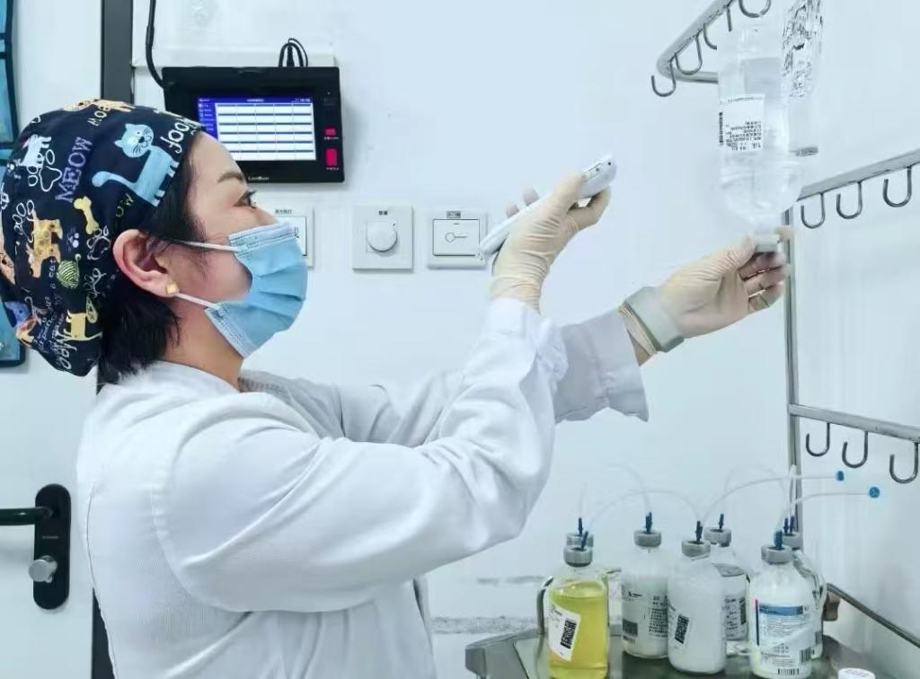 北京大學(xué)腫瘤醫(yī)院臨床試驗(yàn)病區(qū),值班護(hù)士正在核對藥物。(受訪者供圖)