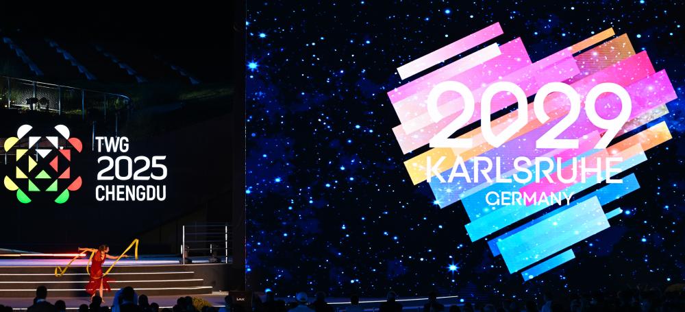 成都世運(yùn)會(huì)組委會(huì)主席施小琳、國際世界運(yùn)動(dòng)會(huì)協(xié)會(huì)主席何塞·佩魯雷納先后致辭,向?yàn)楸緦檬肋\(yùn)會(huì)圓滿成功作出貢獻(xiàn)的所有人員表示感謝。下屆世運(yùn)會(huì)舉辦城市德國卡爾斯魯厄市市長弗蘭克·門特魯普致辭,熱情邀請全球賓客四年后相聚卡爾斯魯厄。