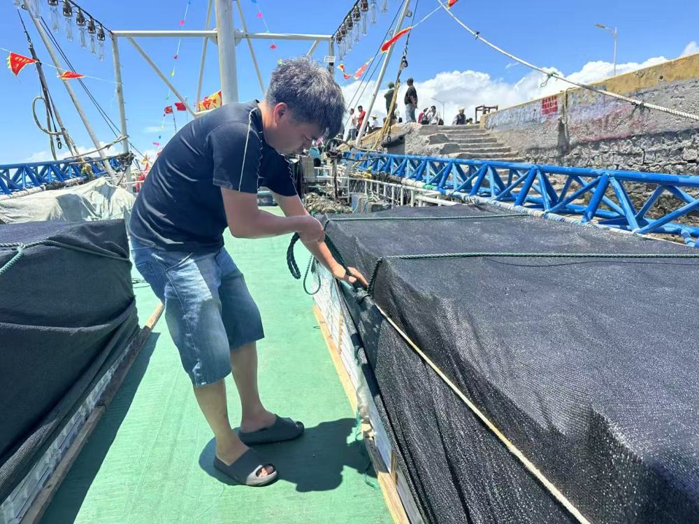 8月16日上午,閩惠漁00177號(hào)船長陳聰莆進(jìn)行開漁前的最后準(zhǔn)備工作。新華社記者 龐夢霞 攝