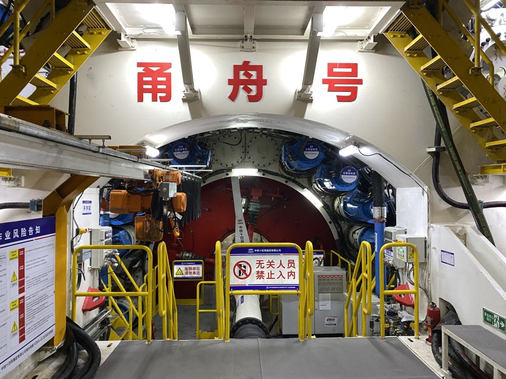 “隧道的施工采用兩臺(tái)盾構(gòu)機(jī)從寧波側(cè)和舟山側(cè)同時(shí)始發(fā),相向掘進(jìn),穿越高水壓及多種復(fù)雜地層后,在海底實(shí)現(xiàn)精準(zhǔn)對(duì)接?!弊瞎こ逃密?,向“甬舟號(hào)”盾構(gòu)機(jī)前進(jìn)的途中,中鐵十四局甬舟鐵路項(xiàng)目盾構(gòu)經(jīng)理趙大彬告訴記者,金塘海底隧道是繼港珠澳大橋后,我國(guó)又一項(xiàng)挑戰(zhàn)世界難題、突破科技壁壘的跨海大工程。