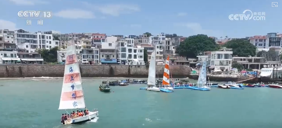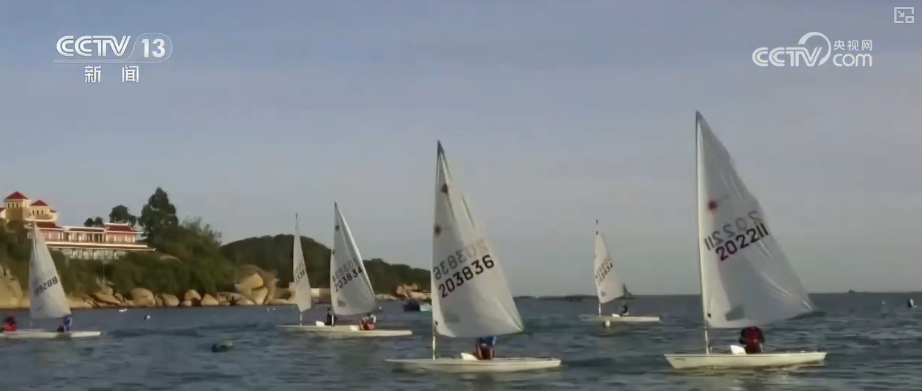 這里是福建東山的南門灣,海風(fēng)帶著咸濕的氣息撲面而來。沿著航線,一路途徑文公祠、風(fēng)動石等標(biāo)志性景點。作為東山海洋經(jīng)濟的重要引擎,帆船運動正在為這邊海域注入不一樣的活力。
