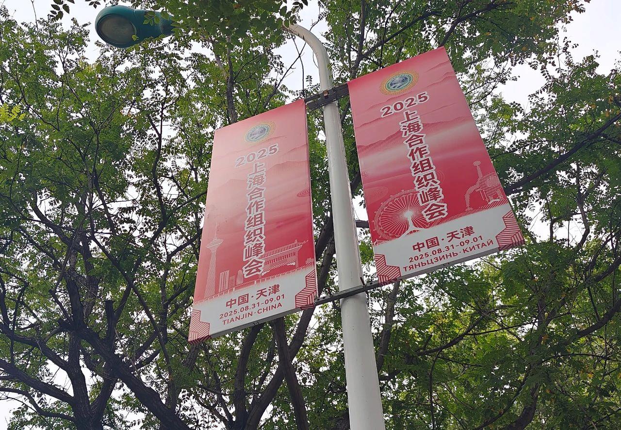 走進(jìn)天津,會發(fā)現(xiàn)體現(xiàn)上合元素的旗幟已經(jīng)掛滿天津主干道路兩側(cè),賞心悅目的花籃也點(diǎn)綴在大街小巷。