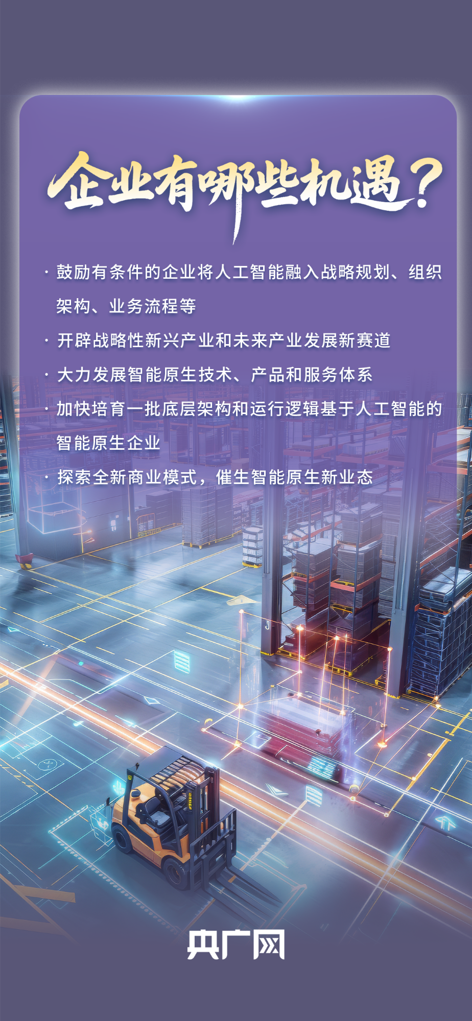 8月26日,《關于深入實施“人工智能+”行動的意見》全文發(fā)布,聚焦科技、產(chǎn)業(yè)、消費、民生、治理、全球合作等六大行動領域,繪出了人工智能發(fā)展清晰的路線圖?!叭斯ぶ悄?”將怎樣影響你我生活的方方面面,讓我們的生活更加便利?一圖讀懂!