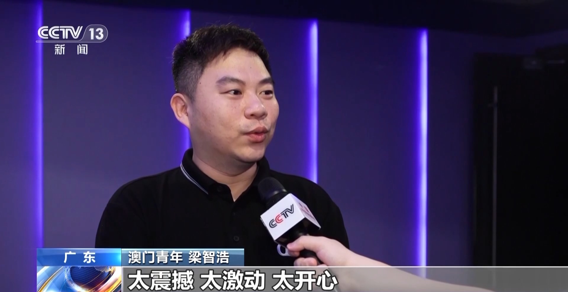 澳門青年 梁智浩:到電影院看閱兵,從來沒試過這么大的屏幕、這么多港澳青年人一起來看閱兵。我心情遲遲未能平復,太震撼、太激動、太開心!