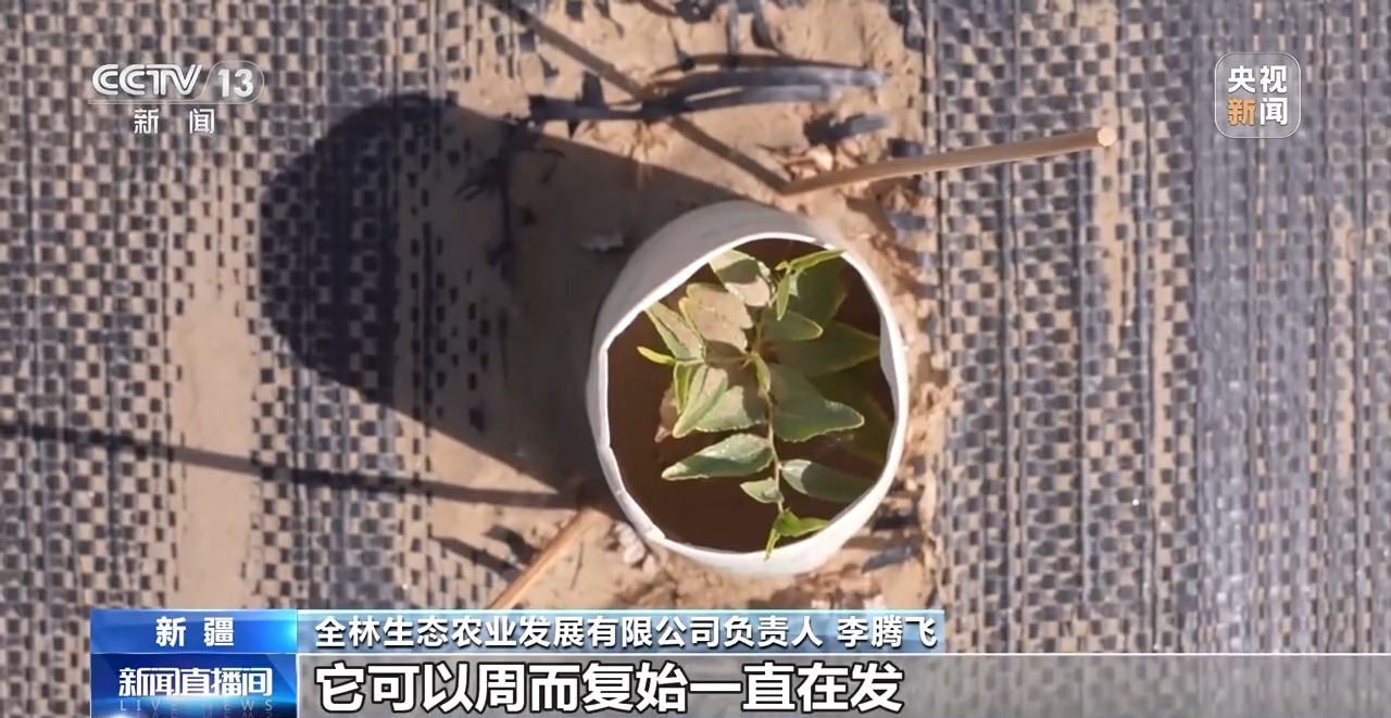 全林生態(tài)農(nóng)業(yè)發(fā)展有限公司負(fù)責(zé)人 李騰飛:沙塵暴這種摧殘之下,它可以周而復(fù)始一直在發(fā),只要它的根系不死,所以說我們稱它為“苗堅強(qiáng)”。