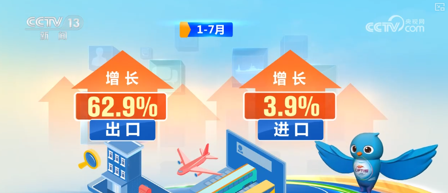 2025年,我國服務(wù)貿(mào)易穩(wěn)步增長,旅行服務(wù)出口增長最快。1—7月,旅行服務(wù)進出口達12594.6億元,增長10.4%。其中,出口增長62.9%、進口增長3.9%。
