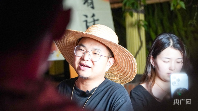 知名“三農(nóng)”主播曲靖老村長正在老街直播(央廣網(wǎng)記者 魏文青 攝)