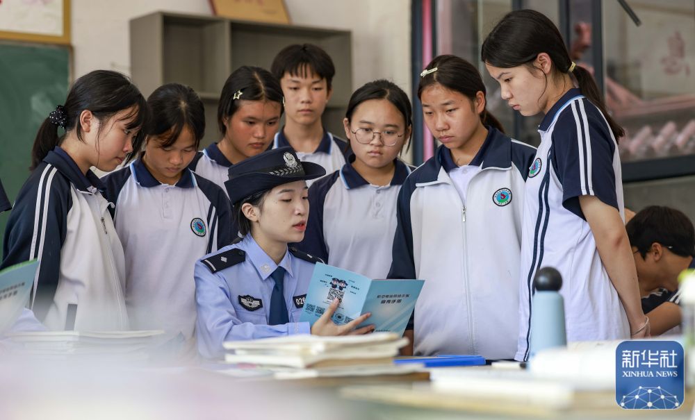 9月15日,民警在貴州省銅仁市玉屏侗族自治縣黔東民族寄宿制中學(xué)給學(xué)生普及網(wǎng)絡(luò)安全知識。新華社發(fā)(胡攀學(xué)攝)