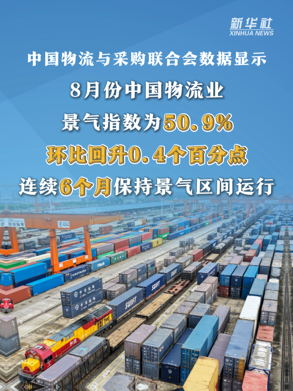 近期,中國國家鐵路集團(tuán)有限公司、中國物流與采購聯(lián)合會(huì)、國家郵政局等發(fā)布多項(xiàng)數(shù)據(jù)。數(shù)據(jù)顯示,今年前8個(gè)月,全國鐵路發(fā)送旅客創(chuàng)歷史同期新高,物流業(yè)景氣指數(shù)連續(xù)6個(gè)月保持景氣區(qū)間運(yùn)行,郵政行業(yè)寄遞業(yè)務(wù)量同比增長(zhǎng)15.5%……多項(xiàng)數(shù)據(jù)折射出我國“人享其行、物暢其流”的經(jīng)濟(jì)活力。