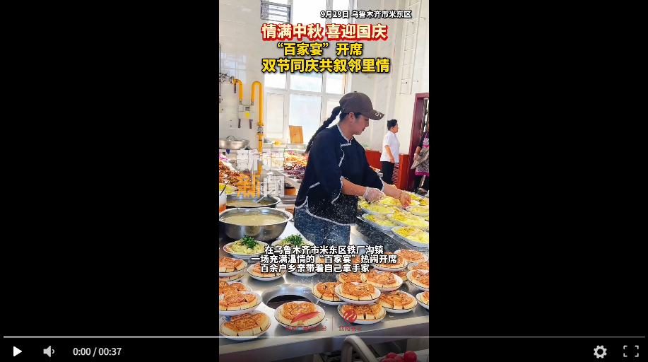 新疆廣播電視臺/絲路視聽訊 (記者:于美玲 李新剛 )中秋與國慶相擁,團圓與歡歌同行。在烏魯木齊市米東區(qū)鐵廠溝鎮(zhèn),一場充滿鄉(xiāng)土溫情的“百家宴”熱鬧開席,百余戶鄉(xiāng)親帶著自己拿手家常菜赴約,用飯菜香、鄰里情,勾勒出雙節(jié)喜慶氛圍。
