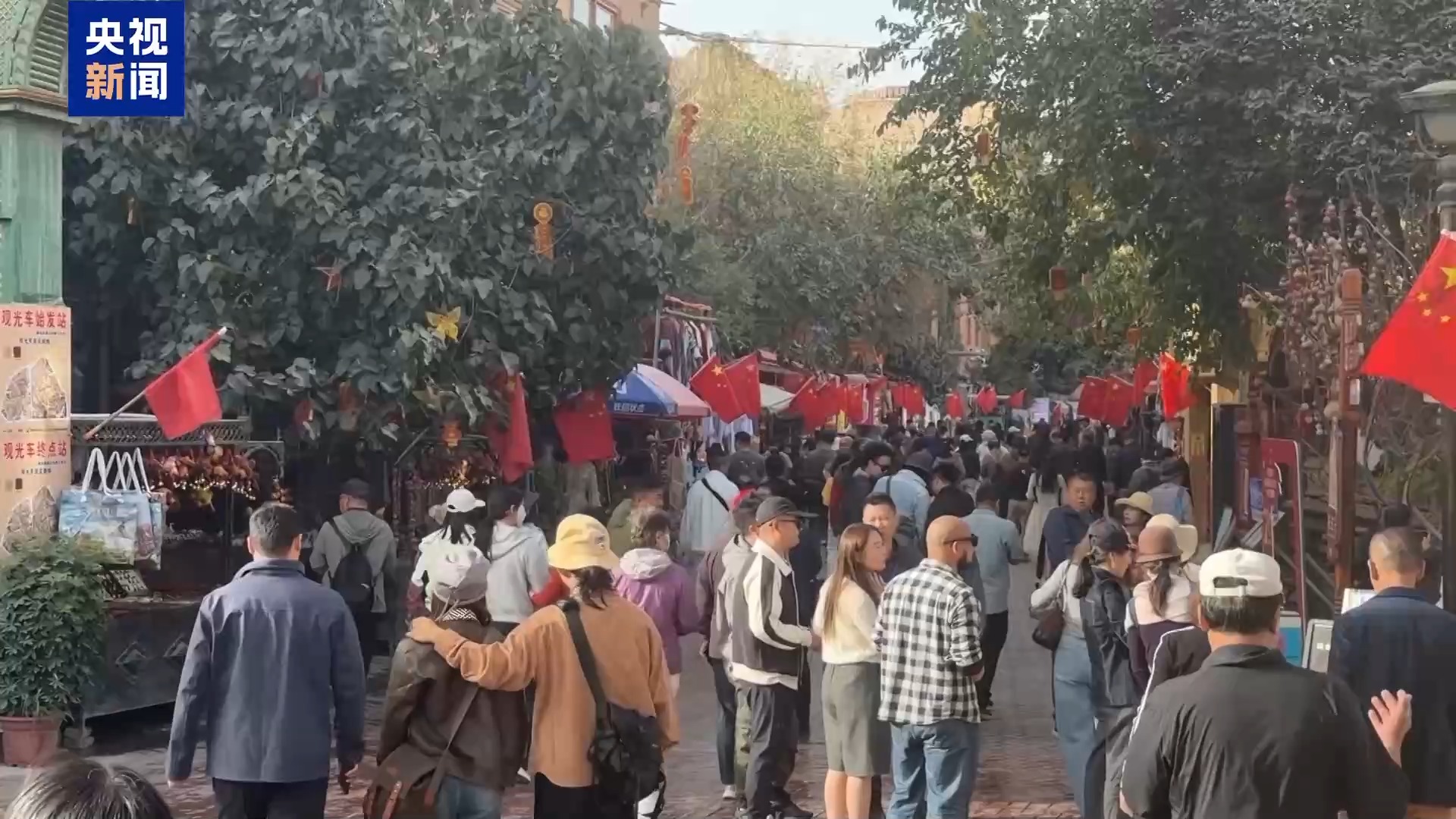 古城街巷里更是掛滿了國旗,讓人們感受到濃濃的國慶氛圍。