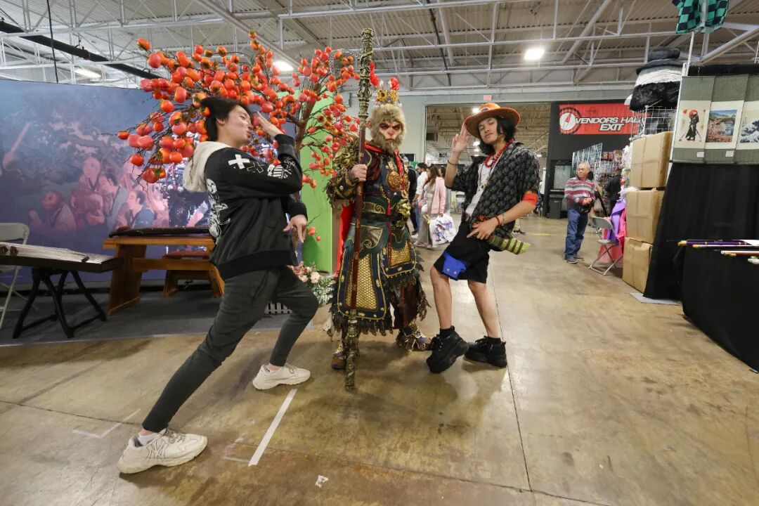 當(dāng)?shù)貢r(shí)間2025年5月25日,加拿大多倫多,在北美動(dòng)漫節(jié)上,一位動(dòng)漫coser(角色扮演者)以中國(guó)國(guó)產(chǎn)游戲《黑神話:悟空》的悟空形象現(xiàn)身,吸引動(dòng)漫迷合影。中新社記者 余瑞冬 攝