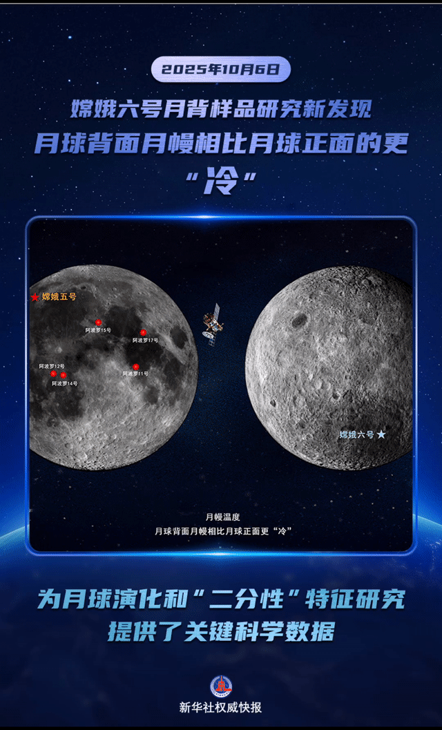 10月6日,國家航天局和國家原子能機(jī)構(gòu)聯(lián)合發(fā)布嫦娥六號月球背面樣品研究最新成果。我國科學(xué)家首次基于嫦娥六號月球背面樣品(月壤)研究發(fā)現(xiàn),月球背面月幔相比月球正面的更“冷”,進(jìn)一步深化了人類對月球“二分性”現(xiàn)象的認(rèn)識,為月球正面與月球背面的月幔溫度差異提供了巖石學(xué)與地球化學(xué)等科學(xué)依據(jù),為月球演化和“二分性”特征研究提供了科學(xué)數(shù)據(jù)。