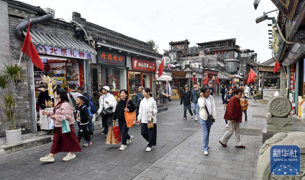 ↑ 10月6日,游客在北京煙袋斜街游覽。新華社記者 李欣 攝
