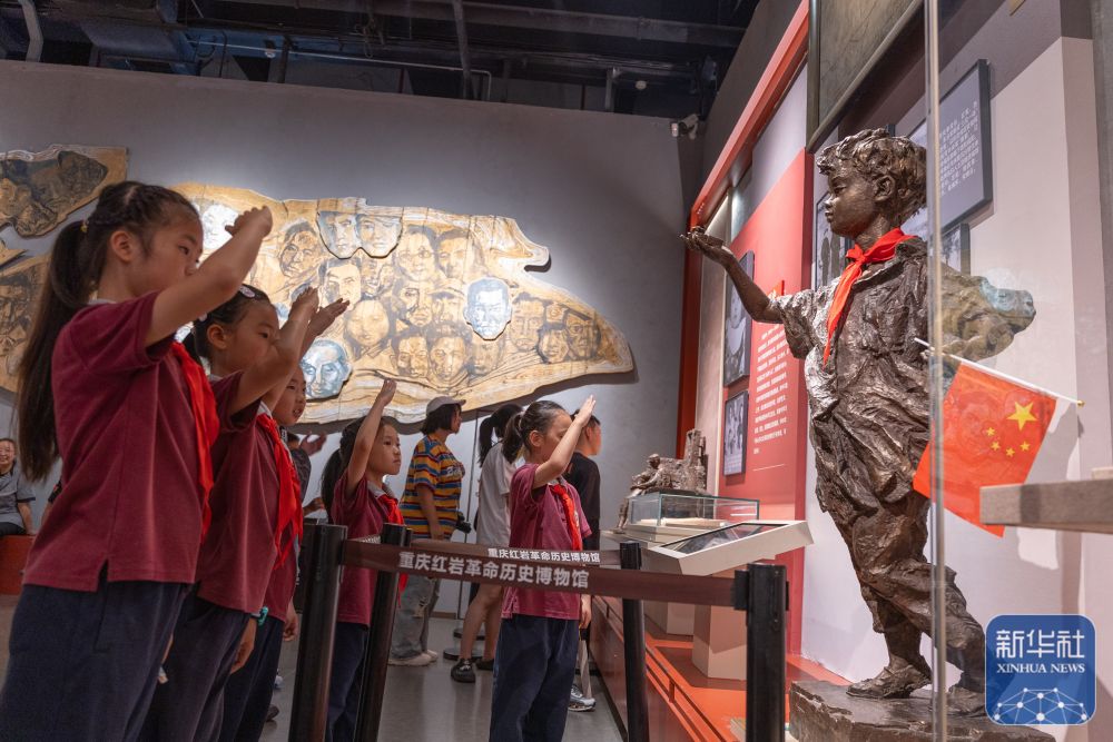 ↑ 10月6日,來自渝北巴蜀小學(xué)二年級(jí)九班的同學(xué)們在重慶歌樂山革命紀(jì)念館參觀。新華社記者 陳誠 攝