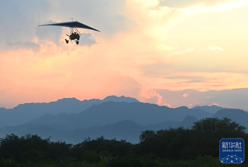 ↑ 10月6日,游客在浙江省金華市武義縣大斗山飛行營地乘坐動(dòng)力三角翼。新華社發(fā)(張建成攝)