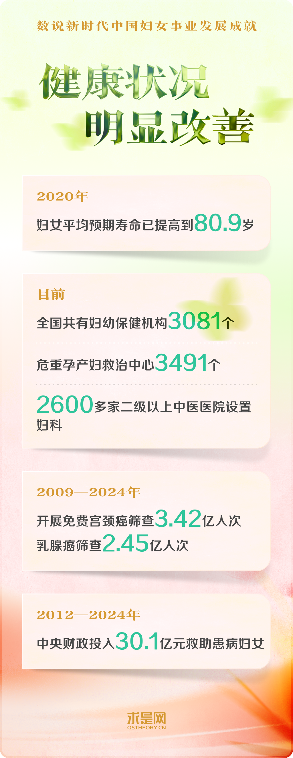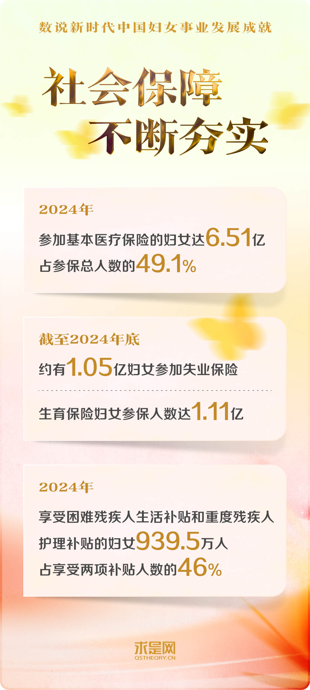 黨的十八大以來,以習(xí)近平同志為核心的黨中央把保障婦女合法權(quán)益、促進(jìn)男女平等和婦女全面發(fā)展,作為中國式現(xiàn)代化的重要內(nèi)容,對婦女事業(yè)發(fā)展作出一系列開創(chuàng)性、全局性、長遠(yuǎn)性的重大決策部署。中國在幼有所育、學(xué)有所教、勞有所得、病有所醫(yī)、老有所養(yǎng)、住有所居、弱有所扶上持續(xù)用力,不斷實(shí)現(xiàn)廣大婦女對美好生活的向往。一組組數(shù)字,記錄下新時代中國婦女事業(yè)跨越式發(fā)展的重大成就。