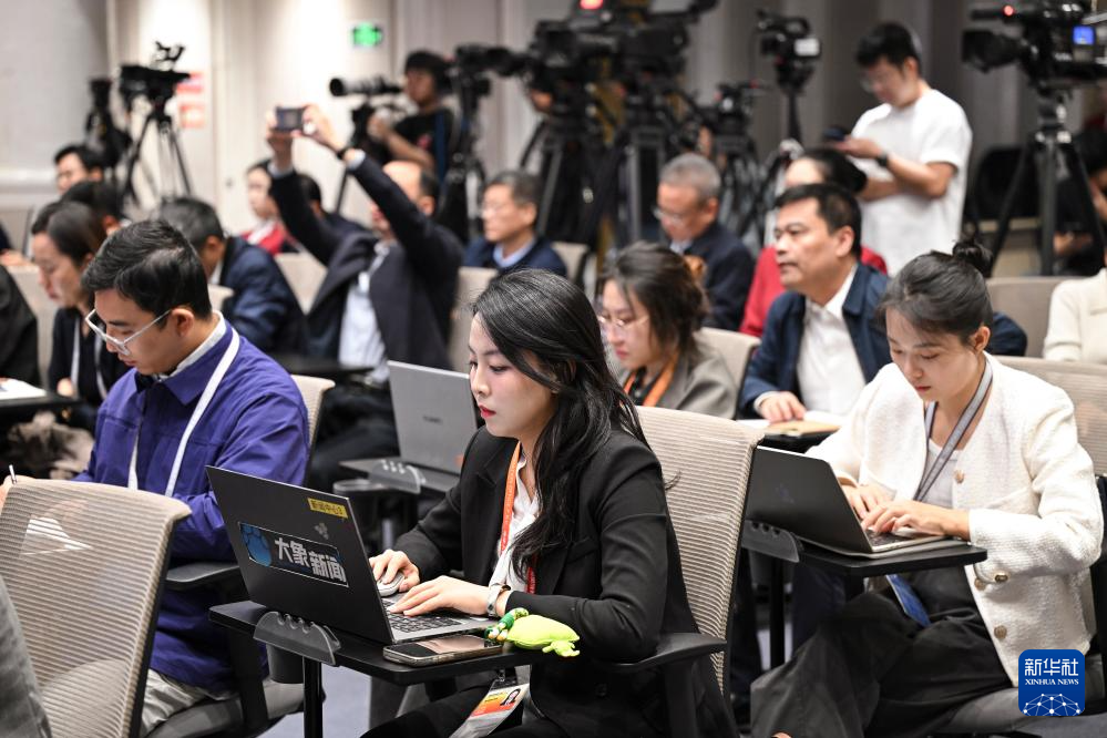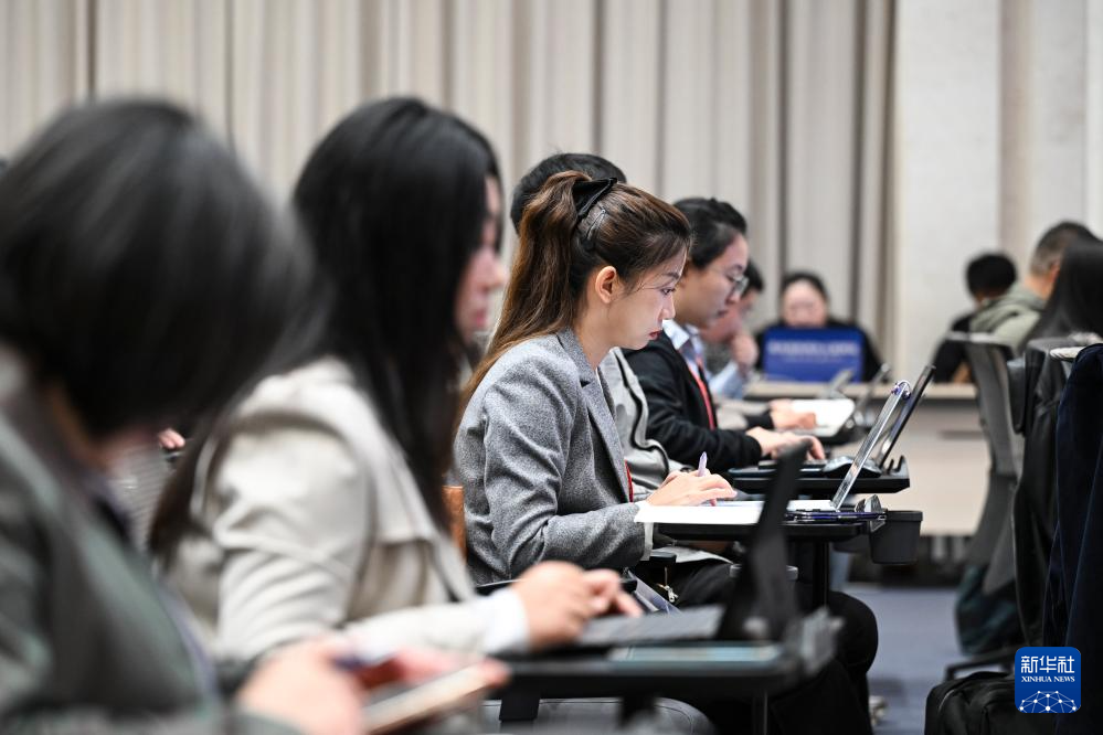 10月14日,國務(wù)院新聞辦公室在北京舉行“高質(zhì)量完成‘十四五’規(guī)劃”系列主題新聞發(fā)布會,國家發(fā)展改革委黨組成員、國家糧食和物資儲備局局長劉煥鑫,國家糧食和物資儲備局副局長錢毅、副局長秦玉云介紹“十四五”時期糧食流通改革發(fā)展成效,并答記者問。這是記者在現(xiàn)場工作。新華社記者 陳曄華 攝