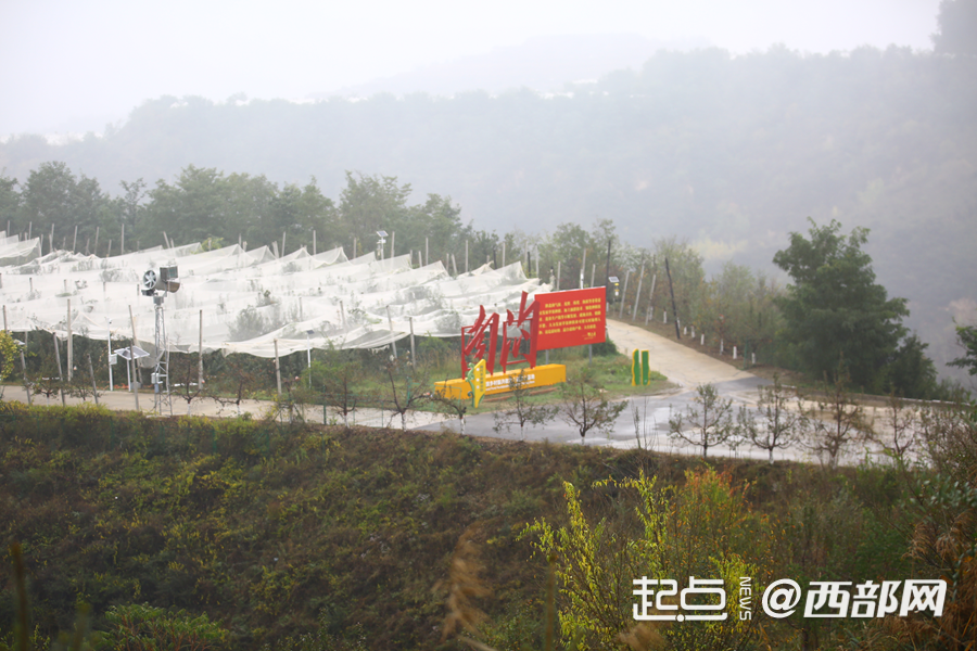 果園搭建的防雹網(wǎng),防止冰雹打壞蘋(píng)果。