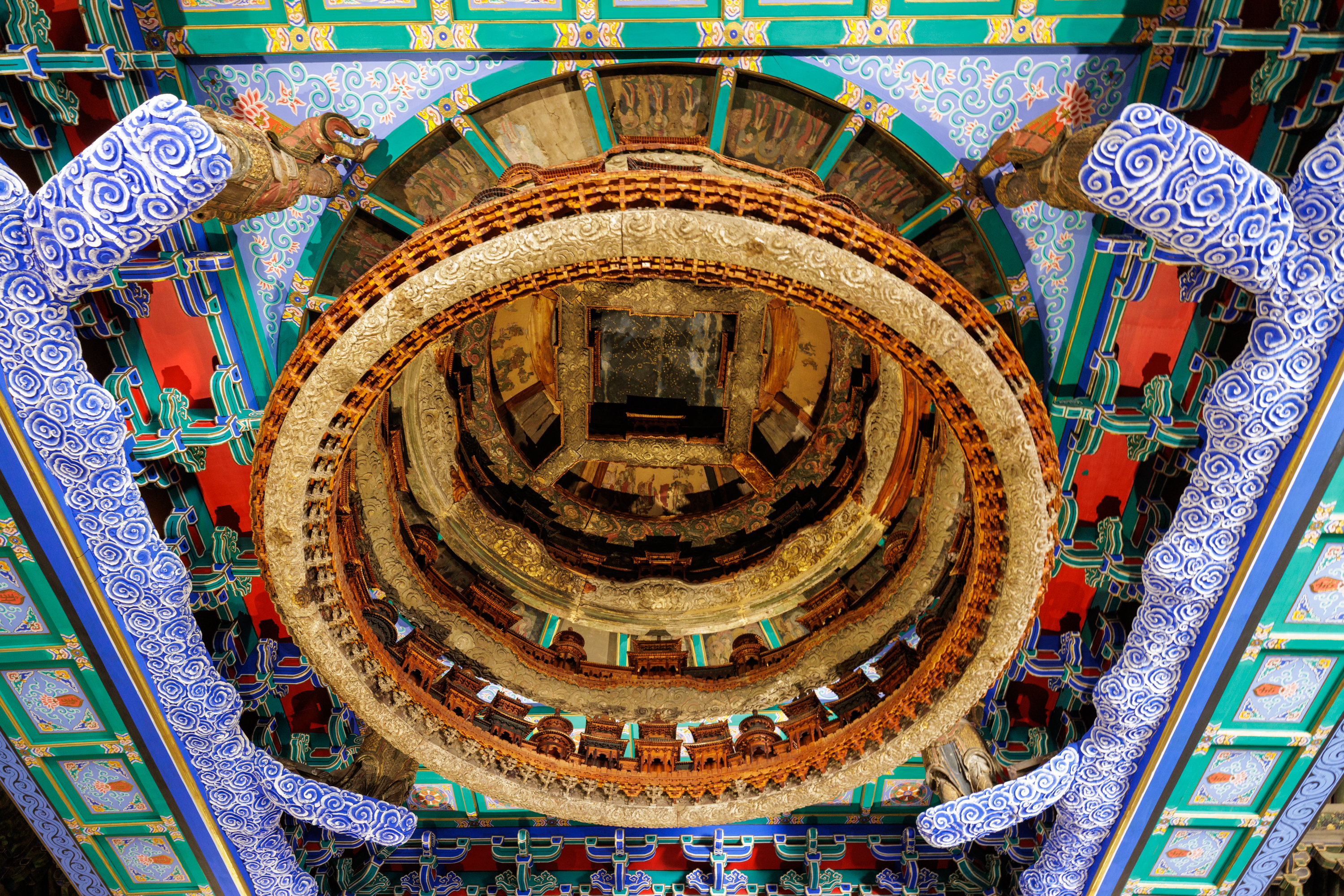 萬善正覺殿天宮藻井是國家一級(jí)文物,原為北京隆福寺的建筑構(gòu)件,受1976年地震影響被拆成散件,后被運(yùn)到北京古代建筑博物館保存,經(jīng)過長達(dá)5年的修復(fù)才基本恢復(fù)原貌,是北京古代建筑博物館的鎮(zhèn)館之寶。