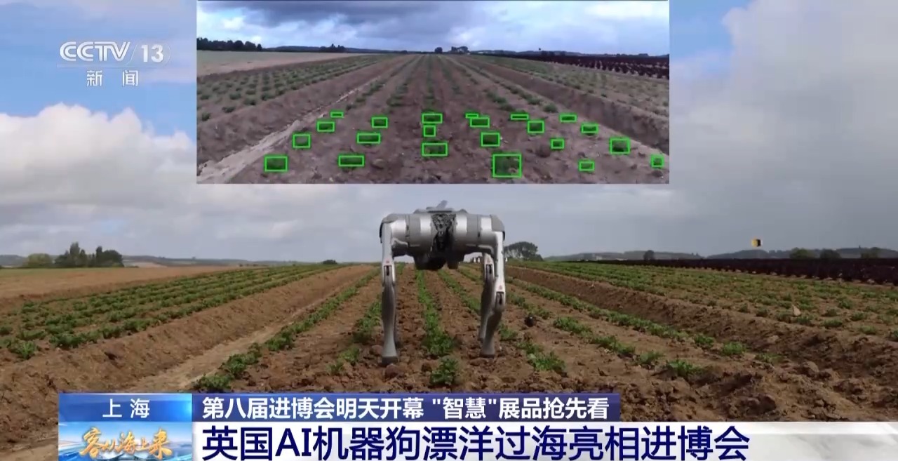 鄭連凱:一款A(yù)I機器狗正在英國的田間做試驗,AI機器狗可以對農(nóng)作物長勢和病蟲害進行全面監(jiān)測,而且連續(xù)工作時長可以超過一小時,真的是一位好勞力。