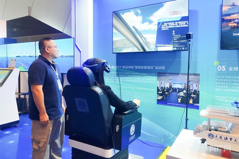 11月14日,2025大連航商大會現場,參會者體驗專業(yè)級VR船舶模擬駕駛(央廣網記者 劉培俊 攝)