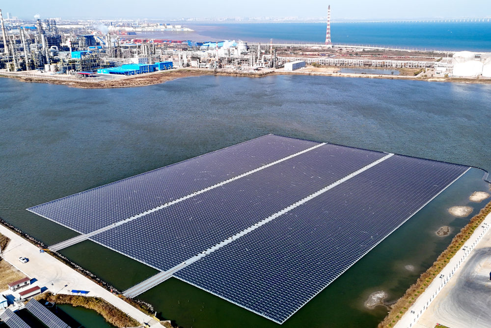11月18日拍攝的中國石化青島煉化公司漂浮式光伏項(xiàng)目。新華社發(fā)(張進(jìn)剛攝)