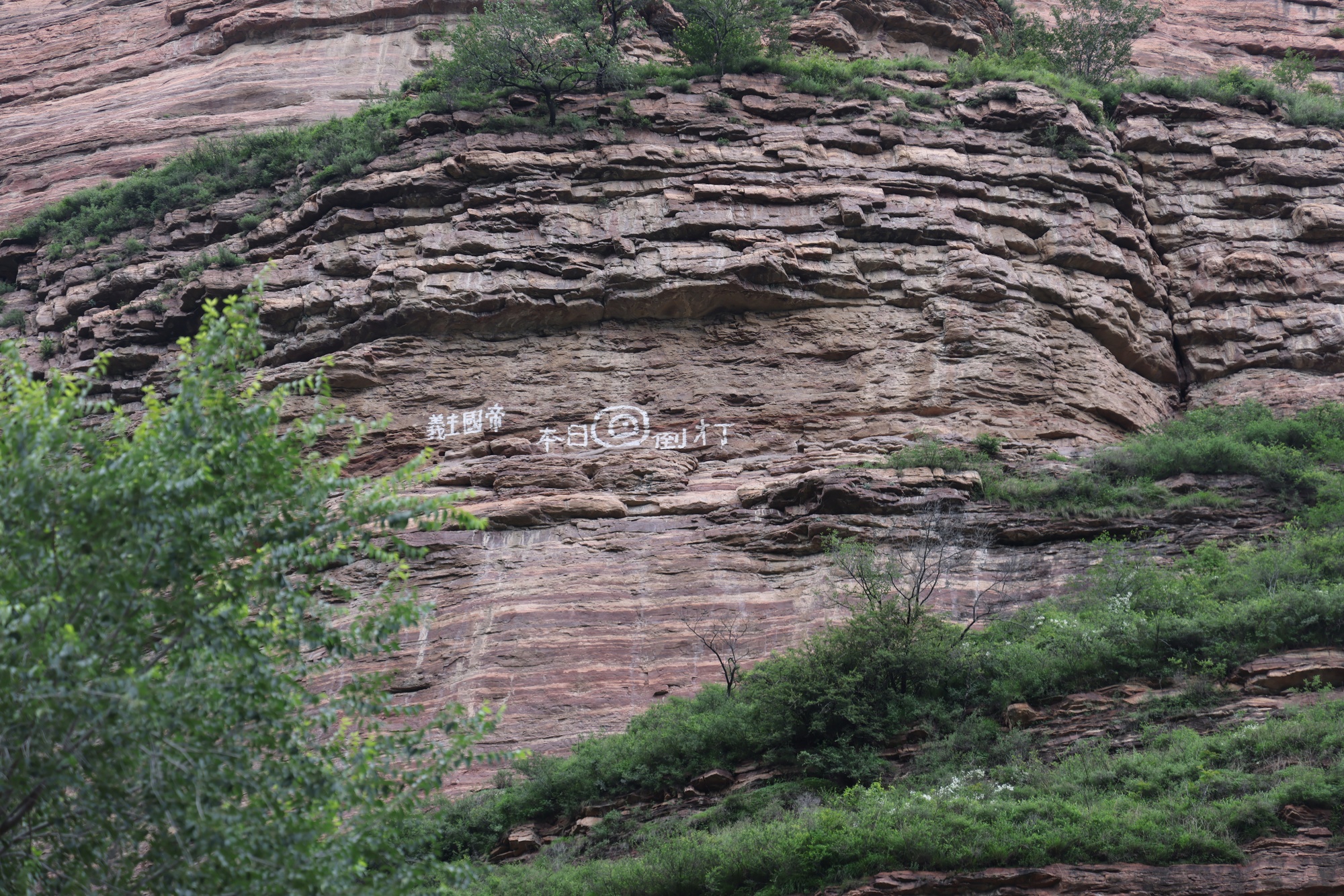 抗戰(zhàn)時期山崖上的標語(黎城縣融媒體中心供圖)