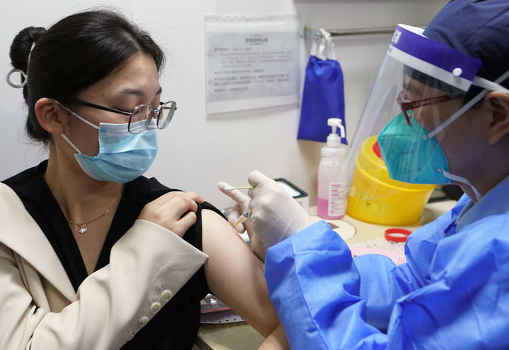 一名女士在復旦大學附屬婦產科醫(yī)院接種九價HPV疫苗(2022年11月11日攝)。新華社記者 劉穎 攝