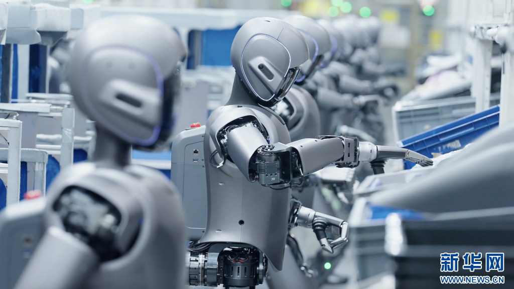 數(shù)十臺(tái)人形機(jī)器人在工廠(chǎng)“實(shí)訓(xùn)”。