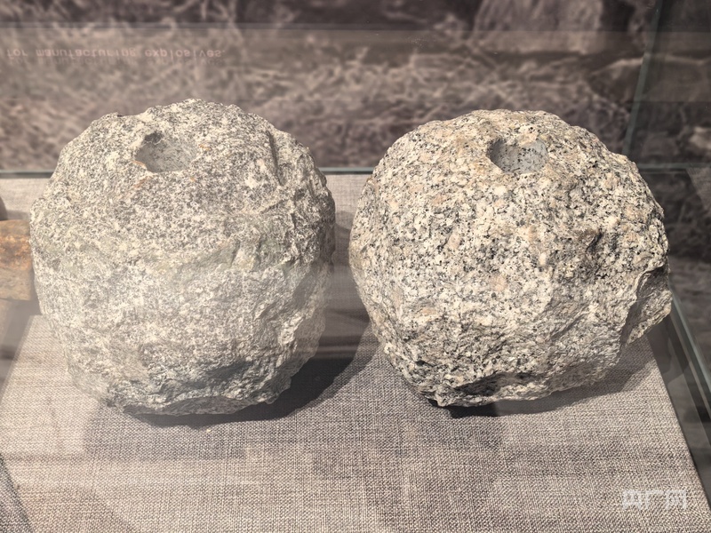 地雷戰(zhàn)紀念館館藏石雷和制作炸藥的石碾(央廣網(wǎng)記者 劉佳音 攝)