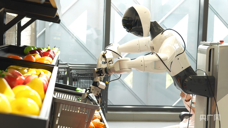 人形機(jī)器人在超市零售場(chǎng)景應(yīng)用訓(xùn)練(央廣網(wǎng)記者鄧子依 攝)