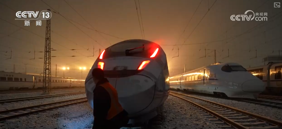 央視網(wǎng)消息:12月12日,京津冀地區(qū)迎來(lái)今冬首場(chǎng)大范圍降雪。為確保動(dòng)車(chē)組列車(chē)在低溫環(huán)境下運(yùn)行狀態(tài)良好,國(guó)鐵北京局連夜開(kāi)展防寒加溫作業(yè)。工作人員在零下5℃的環(huán)境中,為動(dòng)車(chē)組啟動(dòng)空調(diào)系統(tǒng),提升車(chē)廂溫度,防止車(chē)內(nèi)設(shè)備、水管等因低溫凍結(jié),保障動(dòng)車(chē)組列車(chē)第二天安全正點(diǎn)出發(fā)。