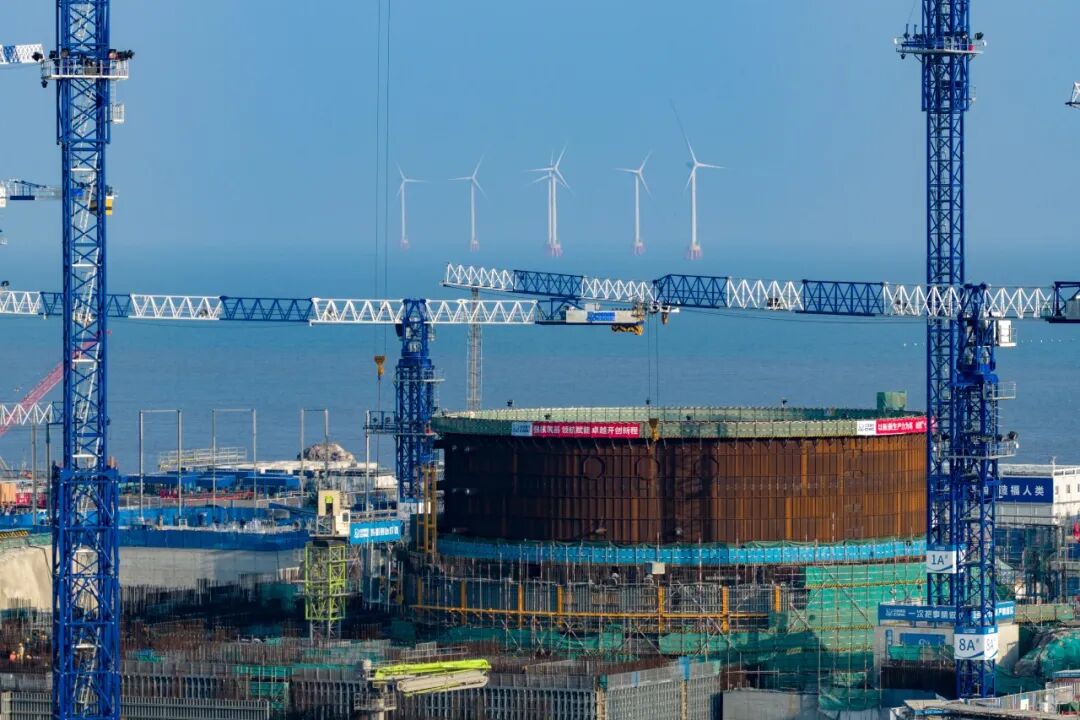 12月15日,浙江寧波象山縣金七門核電項目建設現(xiàn)場,機械轟鳴,施工人員有序作業(yè)。章勇濤攝