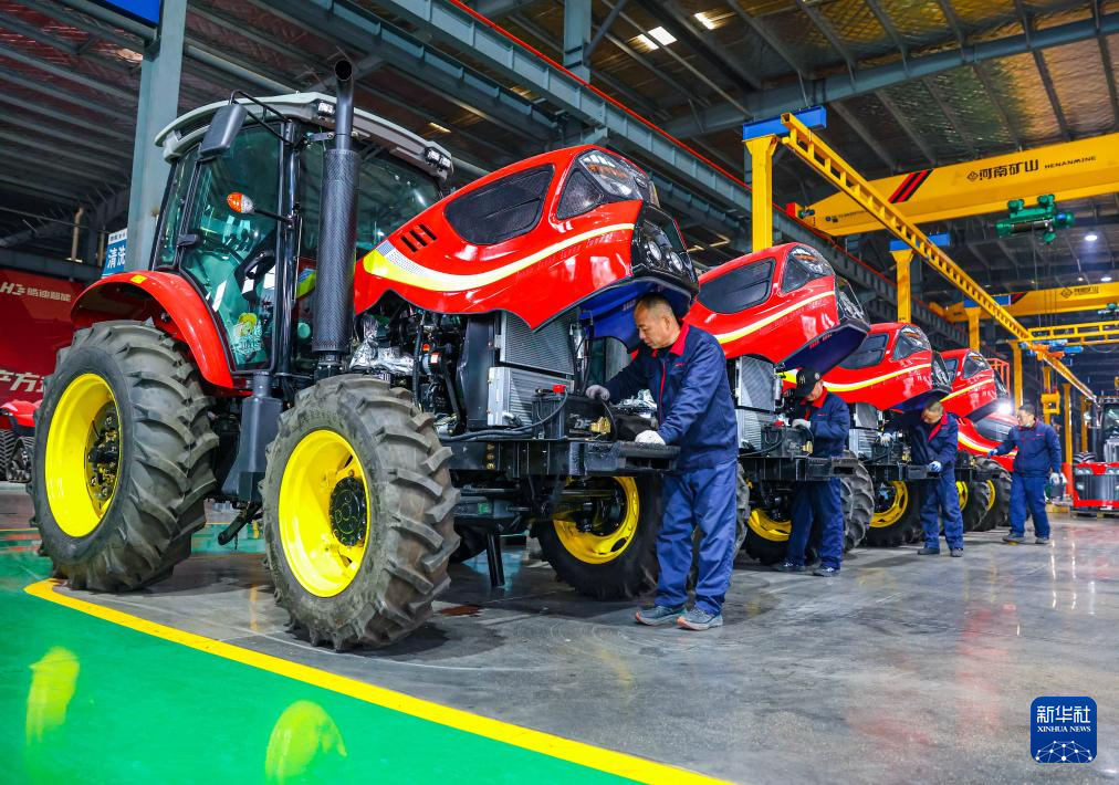 1月19日,在江蘇省江都高新技術(shù)產(chǎn)業(yè)開發(fā)區(qū)的金世紀(jì)(江蘇)智能科技有限公司,工人對即將出售的拖拉機進行檢查。新華社發(fā)(任飛攝)