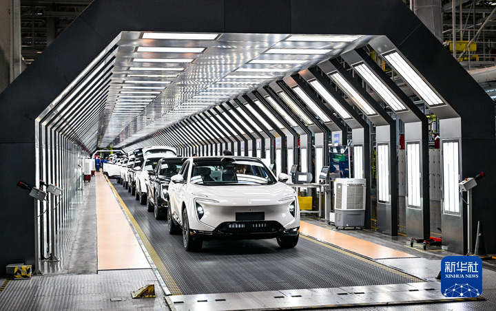2025年9月18日在位于重慶市渝北區(qū)的長(zhǎng)安汽車數(shù)智工廠總裝車間拍攝的即將下線的新能源汽車。新華社記者 王全超 攝